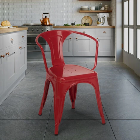 Incarnation parfaite du design emblématique de Tolix, la chaise Steel Arm est l’un des modèles les plus réussis de la collection de sièges AHD, un classique intemporel conçu pour tout environnement qui veut suivre le style industriel et trouve sa place pratiquement n’importe où. Aussi bien à la maison que dans un espace commercial, convaincant à tous égards. Ce qui fait de la ligne de fauteuils Steel Arm l’une des plus recherchées par les amateurs de design industriel, c’est sans aucun doute son look inimitable des années 30-50, son grand confort, sa solidité infaillible et sa stabilité exceptionnelle; caractéristiques essentielles pour ceux qui travaillent dans le monde de la restauration et ont l’intention de créer un espace de style vintage dans leur bar, pub, restaurant, café ou club du centre-ville. Mais elle est aussi parfaite pour ceux qui veulent recréer l’ambiance typique des bistrots à l’intérieur ou à l’extérieur de la maison. La chaise est entièrement réalisée en tôle d’acier d’une qualité incontestée, travaillée avec un traitement en poudre pour la rendre particulièrement résistante et durable dans le temps, puis peinte avec une résine spéciale pour donner une touche brillante supplémentaire et éviter la corrosion et la détérioration même lorsque utilisé à l’extérieur. Le dossier incurvé et enveloppant garantit une position confortable et ergonomique, avec l’assise plate et les accoudoirs qui offrent toujours un excellent confort pour une utilisation quotidienne et autour de tout type de table, même petite.