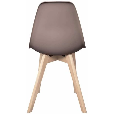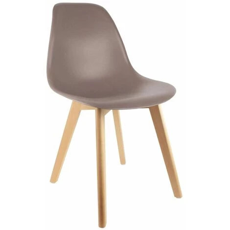 Piétement en bois massif naturel. Coque en poluéthylène coloris taupe. Hauteur d’assise : 42 cm.