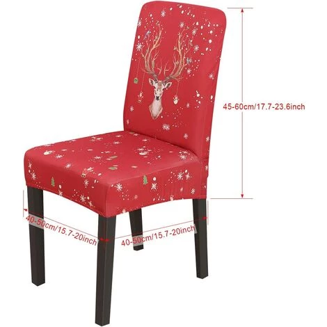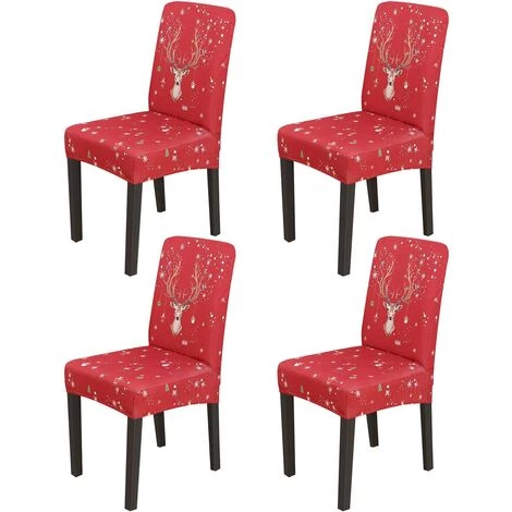 AOUGO Ensemble De Housses De Chaise De Salle à Manger De Noël Stretch Spandex Housses De Chaise De Salle à Manger Courtes Housses De Protection De Chaise Décoratives Amovibles Et Lavables Pour Salle à Manger, Maison, Banquet, Décoration De Fête (rouge, Paquet D