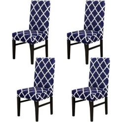 AOUGO Housse De Chaise De Salle à Manger Lot De 4 Housses De Chaise De Salle à Manger En élasthanne Extensible Housses De Siège Décoratives Pour Salle à Manger Mariage Banquet Fête (bleu + Blanc)