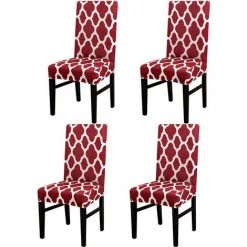 AOUGO Housse De Chaise De Salle à Manger Lot De 4 Housses De Protection Pour Chaise De Salle à Manger Courte En élasthanne Extensible Housses De Protection De Chaise Amovibles Pour Salle à Manger Banquet De Mariage (rouge + Blanc)