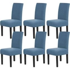 AOUGO Housses De Chaise Pour Salle à Manger Housses De Chaise De Salle à Manger Extensibles Coussins De Chaise Pour Chaises De Salle à Manger Super Fit Protecteur De Chaise De Salle à Manger Housses De Chaise Amovibles Et Lavables Lot De 6, Bleu Poussiéreux