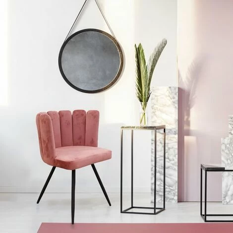 Comblez vos invités avec la chaise Ariel. Son velours luxueux délicatement capitonné ainsi que son charme poudré attireront tous les regards. – 4 pieds en métal