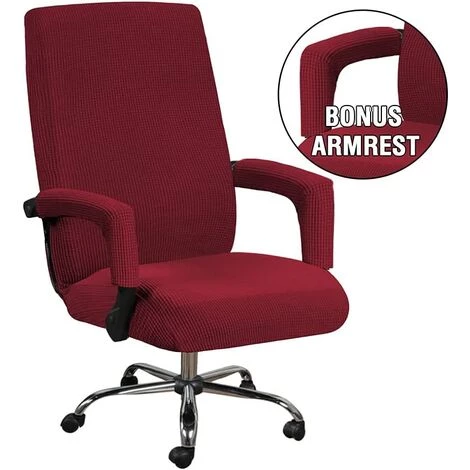 BAICCCF Housse De Chaise De Bureau Extensible Pour Ordinateur De Bureau à Dossier Haut Avec Housses De Bras Housses Lavables En Polyester Jacquqard Pour Protections Universelles De Chaise Rotative (moyen, Vin Rouge) – Vin Rouge