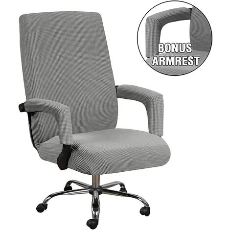 BAICCCF Housse De Chaise De Bureau Extensible Pour Ordinateur De Bureau à Dossier Haut Avec Housses De Bras Jacquqard Polyester Housses Lavables Pour Protections Universelles De Chaise Rotative (Housses D’accoudoirs, Gris Clair) – Gris Clair