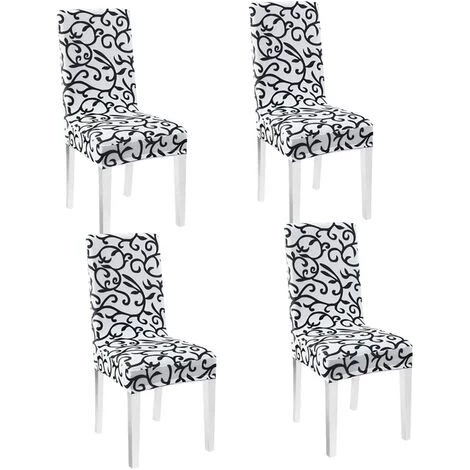 BARES 4 X Housse De Chaise Universelle Housses De Chaise De Salle à Manger Extensible Et Lavables Avec Bande élastique (Noir + Blanc)