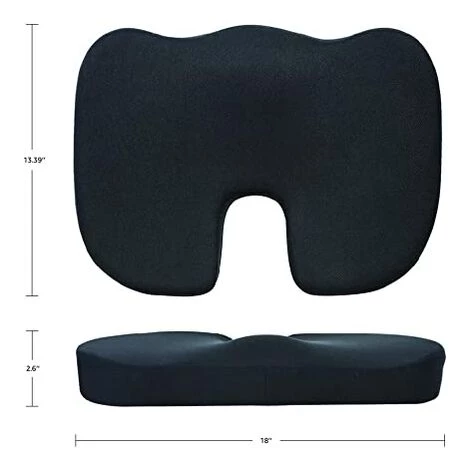 Le coussin en forme de U soulève le coccyx et réduit la pression sur le bas de la colonne vertébrale. La partie en retrait peut aider à prévenir ou à soulager les douleurs sacrées et sciatiques et d’autres affections liées à la position assise.
