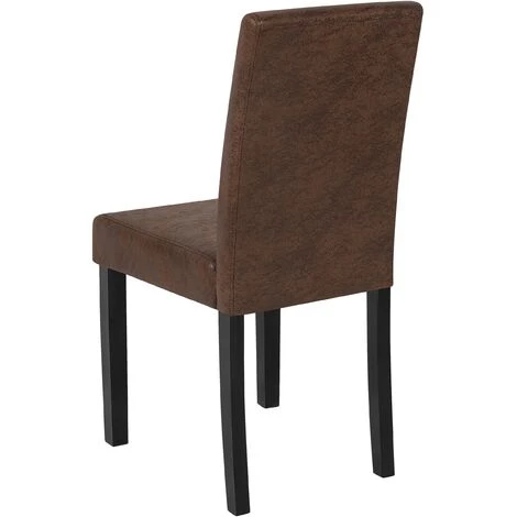 Chaise de salle à manger au style intemporel. Cette chaise au style intemporel peut s’adapter à n’importe quel type de table et n’importe quel style de décoration. Ce siège nous invite à la détente et à la relaxation grâce à leur assise et dossier rembourré très confortable.La chaise mesure 46 x 44 x 92,5 cm et se compose d’un cuir PU de bonne qualité garni de mousse, et de quatre pieds en bois d’hévéa, très stables. Le revêtement est très résistant et facile à nettoyer. Les couleurs en dégradé de marron crée une ambiance sobre et chaleureuse.