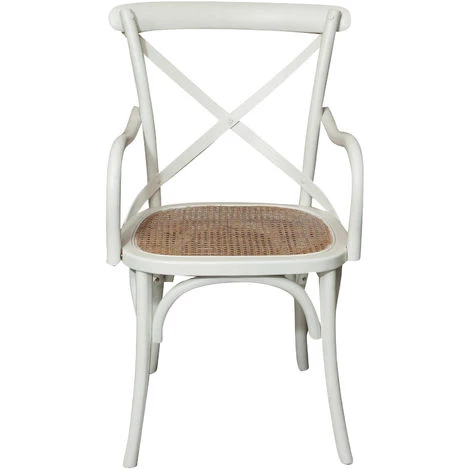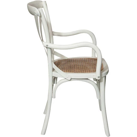 Chaise avec accoudoirs L50xPR43xH89 cm dans le style Thonet en frêne massif avec dossier croisé et siège en paille de Vienne fait main. Grâce à son design bistrot, il est idéal pour meubler en style vintage n’importe quelle pièce ou endroit, sans renoncer au confort.