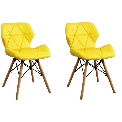 Ensemble 2 chaises Toronto Jaune en simili cuir avec pieds en bois de hêtre