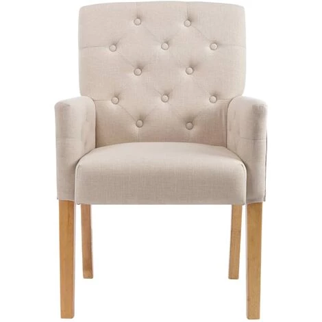 Ce fauteuil, avec un rembourrage épais et doux au toucher, est conçu pour vous offrir un maximum de confort lors de votre dîner ou de votre repos. Le design ergonomique rend la chaise de cuisine extrêmement confortable pour vous reposer. Grâce aux pieds en bois d’hévéa, la chaise est stable et robuste. De plus, le design à boutons ajoute un charme fabuleux à la chaise.