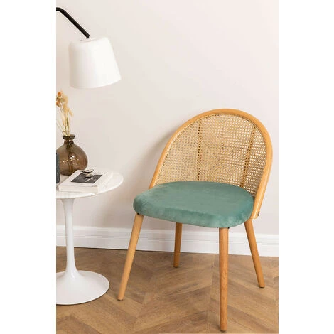 Notre Chaise de Salle à Manger en Bois Kloe, de style nordique, possède une structure en bois de hêtre, une assise recouverte de velours et un dossier en cannage naturel utilisant la technique de la grille cannage, un matériau très résistant et souple. Cette chaise a été créée en prenant soin du moindre détail, avec des lignes sobres et sophistiquées, ce sera la pièce idéale pour n’importe quel environnement. Une combinaison de matériaux qui fera de cette chaise, l’assise parfaite pour les salles à manger les plus sélectes. Osez avec la chaise design Kloe et laissez-vous séduire par sa composition à l’esthétique si différenciée. Pour un bon entretien, nous vous recommandons de le nettoyer avec un chiffon humide, en évitant l’utilisation de produits chimiques. Dimensions (Hauteur x Largeur x Profondeur): 81,5 cm x 56 cm x 57 cm IMPORTANT : Le service standard porte-à-porte ne comprend pas la livraison et la collecte des marchandises au domicile du client, qui sont à la charge de ce dernier. Il est possible que le livreur aide volontairement à la livraison de la marchandise (ceci est totalement volontaire pour le livreur et la société de transport et ne relève pas de la responsabilité de Sklum).L’assemblage n’est pas non plus inclus.