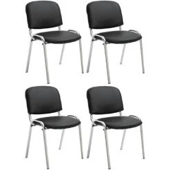 L’ensemble de chaises de visiteur se distingue par son design intemporel et son confort. La surface d’assise et le dossier sont rembourrés et revêtus de similicuir de haute qualité aussi résistant que facile à entretenir. La chaise repose sur un piétement constitué de 4 pieds en métal aspect chromé aussi robustes que stables. Un autre avantage de cette chaise est qu’elle soit ampilable. Il est possible d’empiler jusqu’à 4 chaises ensemble. Ceci permet de gagner en espace lors du rangement. Ce modèle est idéal pour un usage professionnel; dans les foires, les restaurants, les salles d’attentes, de conférences. Il peut également être utilisé en privé au niveau d’une cuisine ou salle à manger.