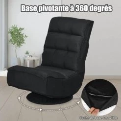 Asseyez-vous confortablement grâce à notre chaise de sol pivotante et réglable. Cette chaise de sol pliable est rembourrée d’une ouate de haute densité qui est douce au toucher. Le revêtement en tissu de haute qualité est respirant, résistant aux déchirures et durable pour une utilisation à long terme. Par rapport aux autres chaises de sol, notre produit au design unique est pivotant sur 360 degrés, ce qui augmentera le plaisir ressentis lors de vos loisirs.