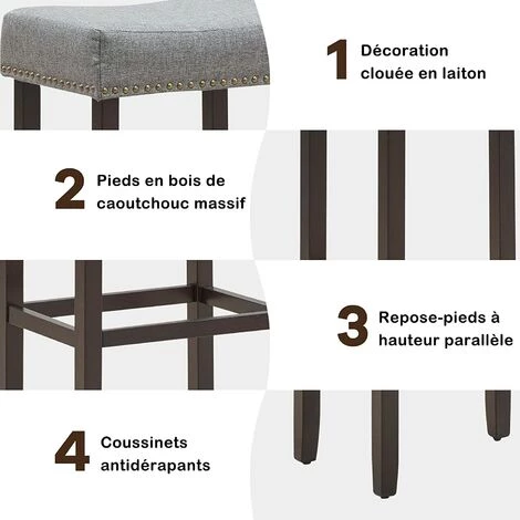 - 【Pieds en hévéa résistants et stables:】les pieds des tabourets de bar sont fabriqués en bois d’hévéa solide et stable. Ils peuvent supporter un poids de 120 kg et permettent une utilisation pendant de nombreuses années. Ils sont également dotés de coussinets antidérapants afin de protéger le sol.