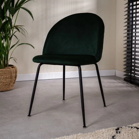 Cette chaise verte est recouverte de velours et est facile à entretenir grâce à notre kit d’entretien textile. Le siège est très confortable et repose sur des pieds en métal.