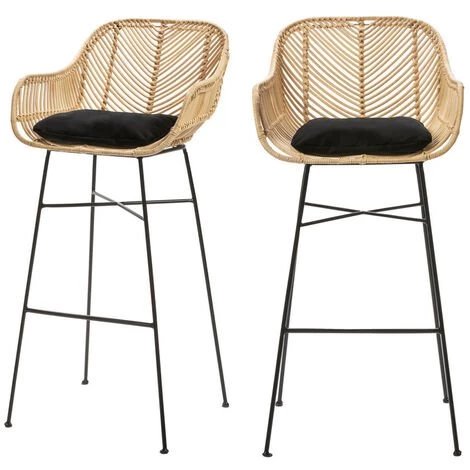 Embarquement immédiat pour les vacances ! Le lot de 2 tabourets de bar en rotin Nunuhai vous transporte loin, très loin, sans même bouger le petit doigt. On adore son assise tressée à la main qui nous évoque les années 70 et la douceur de vivre des pays méditerranéens.