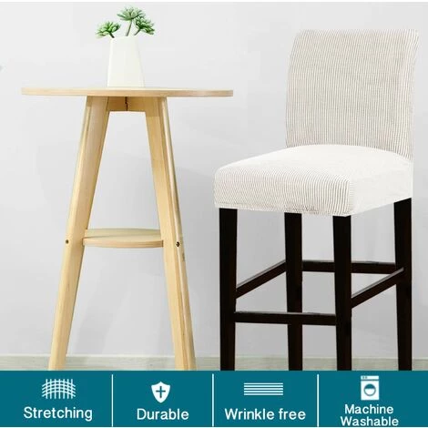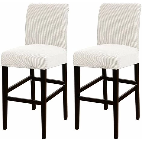 ENLENK Housse De Tabouret De Bar élastique Turquoise Pour Tabouret De Comptoir, Housse De Tabouret De Bar Pour Restaurant, Café, Housse De Siège De Chaise Amovible, Tissu Jacquard Avec Fond élastique, Lot De 2, Blanc Cassé