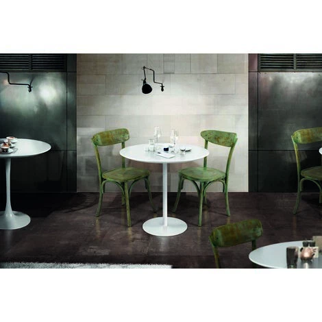Chaise en bois vieilli vert au style vintage. Cette chaise au caractère attrayant est adaptée pour les cuisines et les locaux publics décorés dans le style vintage et industriel.