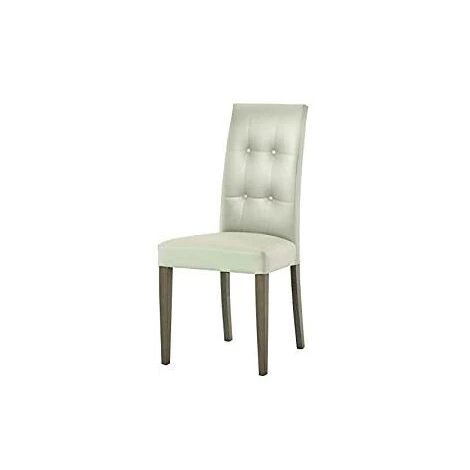 Lot de 2 chaises en simili cuir, assise et dossier rembourrés de couleur beige et structure en bois massif; les boutons sur le dossier lui confèrent un style élégant.