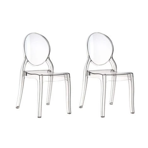 Lot de deux chaises en polycarbonate transparent, matériau qui confère une solidité exceptionnelle en plus d’un design moderne et raffiné. Lot de deux chaises en polycarbonate transparent, matériau qui confère une solidité exceptionnelle en plus d’un design moderne et raffiné.