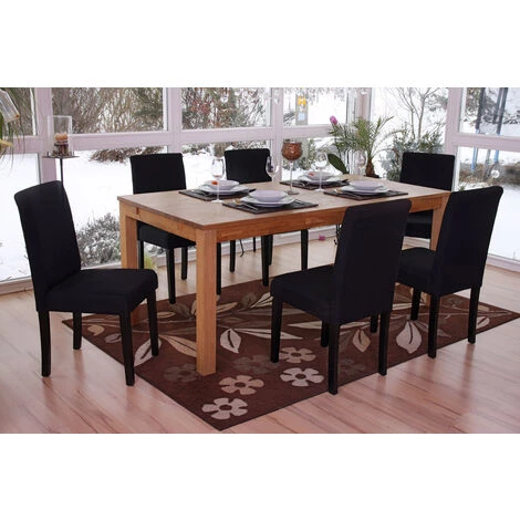 Chaise de salle à manger Littau, chaise de cuisine, tissu/textile ~ noir, pieds foncés
