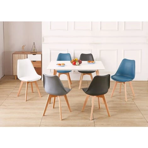 Ce lot de 6 Chaises scandinaves apportera � votre int�rieur la touche de confort � votre int�rieur. L�aspect � nature � gr�ce aux pieds en Bois vous apportera le c�t� nordique. En toute simplicit� et modernit� ces chaises habilleront votre Salon/Cuisine et permettront d�agr�able moment en famille/entre amis. Avec une largeur d�assise de 43 cm et une profondeur d�assise de 42 cm � le confort sera assur�