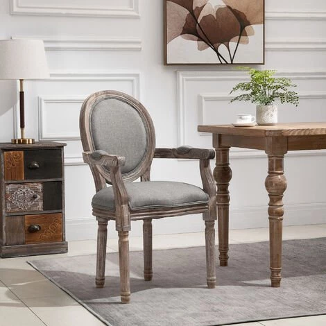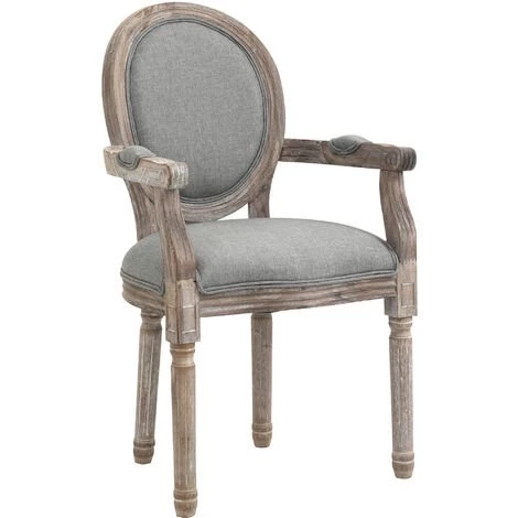 Cette sublime chaise médaillon style Louis XVI ajoutera une touche d’élégance supplémentaire à votre intérieur grâce à sa structure en bois massif de caoutchouc patiné, sculpté et à son assise, dossier et accourdoirs avec revêtement tissu en lin gris.