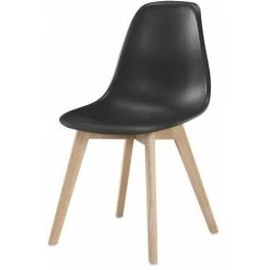 SACHA Chaise de salle a manger – Coque en plastique – Coloris : noir – 4 pieds en hévéa naturel – Inspirée de la tendance scandinave – Dimensions assise : 48x55x42 cm – Dimensions chaise : 48x55x82 cm.