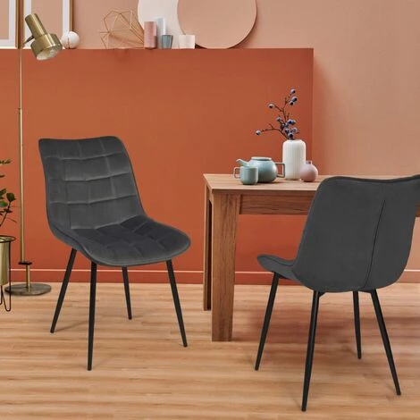 Descriptif des chaises MADY en velours gris clairVous recherchez des chaises modernes et élégantes pour meubler votre salle à manger ? Avec leur design contemporain aux lignes épurées, les chaises MADY en velours gris clair apporteront une ambiance cosy et chaleureuse à votre intérieur.Leur assise en velours, large et matelassée, vous garantira un confort absolu pour tous vos repas et vous permettra de profiter pleinement de ces moments de convivialité. Leur dossier d’une hauteur de 46 cm apporte un soutien supplémentaire à votre colonne vertébrale.Leurs 4 pieds en métal noir mat leur assurent robustesse et stabilité, tout en soulignant le look résolument moderne et design de ces chaises de salle à manger.Il ne vous reste plus qu’à vous installer confortablement autour de la table !Dimensions des chaises MADY en velours gris clairDimensions totales : Longueur 46 x largeur 62,5 x Hauteur 82 cmDimensions assise : Longueur 46 x largeur 44 x Hauteur 46 cmPieds en métal noir matStructure d’assise en boisRevêtement en veloursVendues en lot de 4A monter soi-mêmeModèle disponible dans d’autres coloris :- Chaises velours MADY gris foncé- Chaises velours MADY bleu- Chaises PU MADY noir- Chaises velours MADY mix color bleu, gris clair, gris foncé, jauneRetrouvez l’ensemble de nos chaises de salle à manger sur notre boutique en ligne !