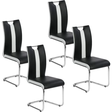 Comme une envie de changer le mobilier de votre salle Ă manger pour une dĂ©coration plus tendance ? Optez pour ce lot de 4 chaises PIA noires et blanches actuellement Ă petit prix chez ID Market. Avec leur design sophistiquĂ©, choisissez des chaises aux finitions travaillĂ©es qui trouveront forcĂ©ment leur place dans votre salle Ă manger ou votre cuisine ! Descriptif des chaises PIA noires et blanches pour salle Ă manger Alliez confort et design en utilisant les chaises PIA noires et blanches ID Market. DĂ©couvrez ce lot de 4 chaises pas cher qui sera parfait dans votre salle Ă manger.Le cadre et le piètrement en mĂ©tal chromĂ© des chaises PIA noires et blanches vous assurent robustesse et stabilitĂ©. Comptez Ă©galement sur la poignĂ©e en mĂ©tal ultra tendance et intĂ©grĂ©e dans le dossier de la chaise pour la dĂ©placer plus facilement. Vous saurez apprĂ©cier le confort des chaises PIA grâce Ă leur rembourrage en mousse prĂ©sent dans l’assise comme dans le dossier de la chaise (Ă©paisseur 3 cm). C’est l’occasion de partager de bons repas entre amis ou en famille confortablement installĂ©s ! Quoi de mieux que de pouvoir profiter d’un design sophistiquĂ© qui se traduit par une touche de modernitĂ© ! Les dĂ©tails bicolores des bandes dĂ©coratives apporteront une rĂ©elle touche tendance dans votre salle ou cuisine, de quoi faire des jaloux ! Dimensions des chaises PIA noires et blanches pour salle Ă manger Dimensions totales : Longueur 44 cm x largeur 59 cm x Hauteur 99 cmDimensions assise : Longueur 42,5 cm x largeur 41 cm x Hauteur 48 cmÉpaisseur de l’assise : 3,8 cmDimensions dossier : largeur 38 cm x Hauteur 51 cmEpaisseur du dossier : 3 cmGarnissage de l’assise et du dossier : Mousse non recyclĂ©e (22 kg/mÂł) et mousse recyclĂ©e (50 kg/mÂł)Hauteur des pieds : 41 cmModèle Ă©galement disponibles dans d’autres coloris :- Lot de 4 chaises PIA grises et blanches pour salle Ă mangerRetrouvez l’ensemble de nos chaises de cuisine sur notre boutique ligne !