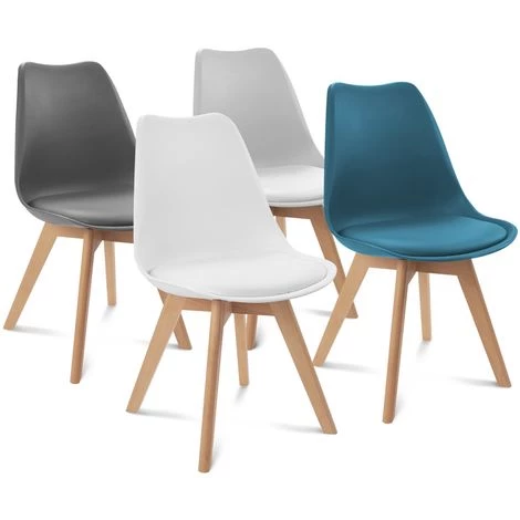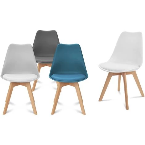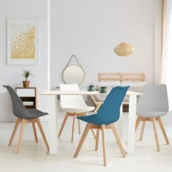 Vous voulez apporter une touche nordique à votre intérieur et changer la décoration de votre salle à manger ou de votre cuisine ? ID Market vous propose son lot de 4 chaises scandinaves aux couleurs ultra tendances qui donnera une note moderne à votre décoration intérieure. Profitez d’un design tendance et d’un petit prix sur le site d’ID Market. Descriptif des chaises scandinaves 4 couleurs Inspiré de la déco nordique, ce lot de 4 chaises scandinaves proposé par ID Market est l’élément qui fait la différence dans votre intérieur. Le design chic et épuré de ces chaises scandinaves plaira à vos convives. Conçues en polypropylène et en bois de hêtre, elles offrent une assise très confortable, pour passer d’agréables moments en famille ou entre amis autour d’un repas. Le dossier flexible de ces chaises scandinaves permet d’avoir un excellent confort d’assise. L’assise rembourrée de ces chaises est elle aussi très confortable. Enfin, les pieds en bois de hêtre aux finitions travaillées assurent une bonne stabilité des chaises.Installez-les dans votre cuisine, salle à manger, bureau ou dans la pièce que vous souhaitez, ces chaises scandinaves s’adaptent partout grâce à leur design simple et élégant. Si vous ne souhaitez pas dépenser une somme astronomique pour meubler votre intérieur, ID Market vous propose ces chaises scandinaves pour parfaire votre décoration et apporter modernité et simplicité à bas prix !Profitez de 4 couleurs gris foncé, gris clair blanc et bleu pour mixer les chaises design avec la décoration de votre pièce. Les notes grises s’accordent à la perfection avec le contraste blanc et bleu des chaises : elles donnent une note POP à votre intérieur ! Dimensions des chaises scandinaves 4 couleurs- Dimensions totales : Longueur 48 cm x largeur 60 cm x hauteur 80 cm- Largeur extérieure entre deux piétements : 23.5 / 43.5 cm- Vendues en lot de 4 – Coloris : gris foncé, gris clair, blanc et bleu- Dossier en polypropylène- Pieds en bois de hêtre Découvrez tous nos autres coloris sur notre boutique en ligne : – Gris foncé, gris clair, blanc et noir- Gris foncé, gris clair, blanc et jaune