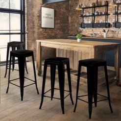 Vous aimez le style industriel de ces 4 tabourets ? Alors profitez de ce joli lot très fonctionnel à petit prix ! Ces tabourets s’associeront facilement à la décoration de votre pièce, autour d’un îlot central, ou d’une table haute. Très pratiques, vous pourrez les empiler pour gagner en place.Conçues avec une structure en métal noir pour un usage au quotidien, les tabourets LENY sont robustes et stables et ne craignent pas les taches. Équipés d’embouts en plastiques sous les pieds, les tabourets noirs mat ne rayeront pas vos sols et vous assureront un maintien optimal.Leur finition en métal noir apportera une touche industrielle rétro tendance ! Les tabourets sont équipés d’un repose-pied en métal pour une position confortable pendant les repas. Grâce à la fente de l’assise 30 x 30 cm, vous pourrez les déplacer facilement ! Avec leur look industriel, les 4 tabourets noirs LENY finition mat se marieront très facilement avec d’autres styles : vous pourrez les associer dans une pièce avec nos tabourets LENY ou d’autres styles de tabourets pour créer une ambiance moderne.Osez mélanger le style industriel à une décoration plus classique ! Dimensions du lot de 4 tabourets de bar LENY- Dimensions totales : Longueur 42 CM x largeur 42 CM x Hauteur 77 CM- Dimensions de l’assise : 30 x 30 CM- Hauteur du repose-pied : 20 CM- Dimensions fente de l’assise : L.3,5 x l.9 CM- Matériaux : métal 0,1 CM- À monter soi-mêmeComplétez la collection avec nos chaises en métal noir LENY et créez une atmosphère industrielle chez vous !