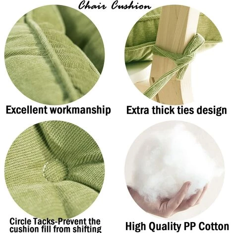 【Haute qualité】 Le coussin de chaise de salle à manger est fait de matériaux naturels respectueux de l’environnement, avec du velours côtelé comme revêtement et du coton perlé EPE comme rembourrage. La construction épaissie offre un confort et une longévité supplémentaires pour une assise prolongée. La sangle d’attache incluse fixe solidement le coussin carré extérieur à vos meubles de patio extérieur.