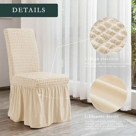 AVANTAGES : La chaise peut facilement devenir pas belle, en particulier lors de diverses occasions de restauration. Avec notre housse de chaise, elle s’enlève facilement pour entretenir votre chaise. Si votre chaise a l’air un peu cassĂ©e ou pas si neuve, mais que vous ne voulez plus acheter une nouvelle chaise, mettre une housse de chaise donnera Ă votre chaise un nouveau look.