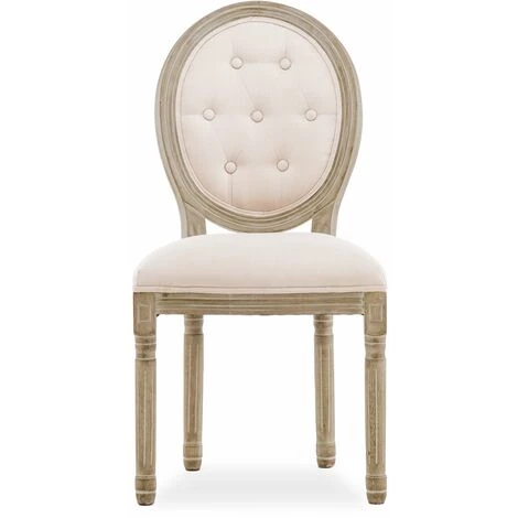 La chaise médaillon capitonnées Louis XVI en tissu et bois prendra place tout naturellement dans votre salle à manger ou encore devant votre coiffeuse. Avec son dossier ovale capitonné et son assise parfaitement rembourrée, vos convives pourront déguster leur repas en toute tranquillité. Grâce à son alliance de bois patiné et de tissu, votre table de salle à manger sera mise en valeur sans le moindre artifice.