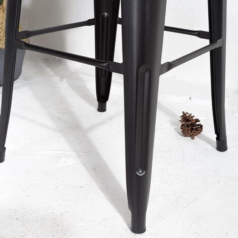 KOSMI – Silla de bar, gran taburete de estilo industrial con pequeño respaldo de metal negro mate y asiento de madera natural clara
