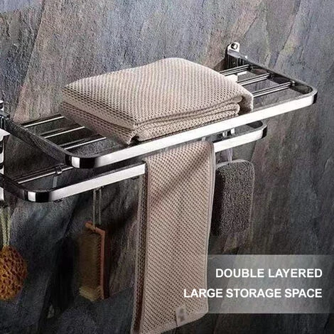 Caractéristiques :[Double couche] Le porte-serviettes à double couche peut fournir plus d’espace de stockage pour la salle de bain.[Pliable] Le porte-serviettes pliable peut être rangé lorsqu’il n’est pas utilisé et ne prend pas de place.[Conception de crochets] Le porte-serviettes avec crochets peut accrocher des brosses ou une boule de bain, rendre votre cuisine et votre salle de bain plus belles.[Bords lisses] L’anneau de serviette de bain au toucher lisse peut éviter les blessures causées par les rayures, vous faire sentir en sécurité et pratique dans la vie quotidienne.[Heavy Duty] Fabriqué en acier inoxydable 304 solide, corps robuste et robuste assurant durabilité et longévité pour une beauté à vie.