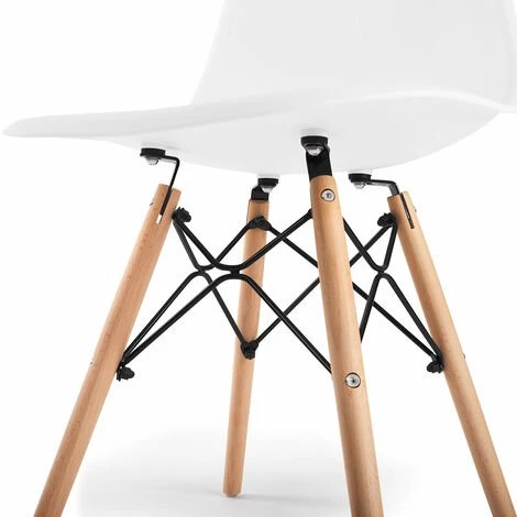 Équipé d’une surface en polypropylène résistant et d’un dossier ergonomique qui s’adapte parfaitement à votre corps, offrant ainsi un plus grand confort. Ses pieds coniques en bois de hêtre massif sont reliés par des tiges en métal laqué noir, dont la structure s’inspire de la Tour Eiffel. Chaque chaise peut supporter un poids allant jusqu’à 120 kg.