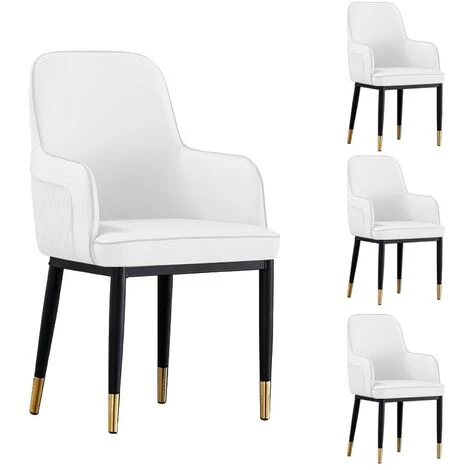Le lot de quatre chaise en similicuir de couleur blanc, noir ou beige et gris avec de fins pieds en métal noir et doré fera le meilleur effet au sein d’un intérieur contemporain. Très confortable grâce à son assise rembourrée et son dossier arrondi et enveloppant.