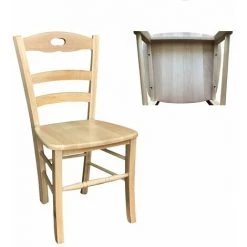 Chaise Loris en bois de hêtre massif avec assise en bois massif, repose-pieds arrondi, dossier à lattes marquetées. Il a une structure très robuste et résistante. Convient à tout environnement : salle à manger, taverne, taverne, restaurant etc…