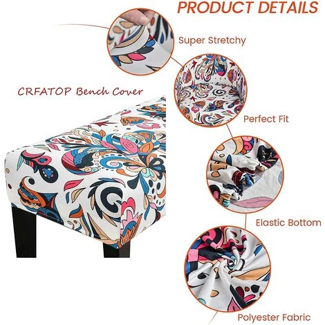 PERLE RARE Housse De Banc De Salle à Manger Imprimée Housses De Coussin De Siège De Banc Imprimées Housse De Banc Rembourrée Extensible Housses De Chaise De Salle à Manger Lavables Amovibles Pour Chambre à Coucher Salon