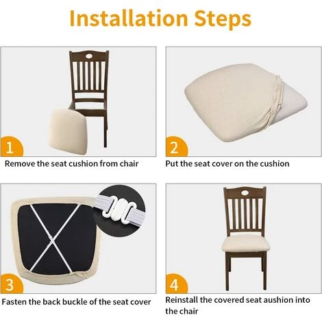 Matériel : Polyester élasthanne. Fabriqué en tissu premium qui a une grande élasticité, couvrant mieux la chaise. Idéal pour la cuisine, la chambre à coucher, la décoration de salon, le bureau ou l’hôtel, le banquet de mariage, la célébration, la cérémonie, etc.