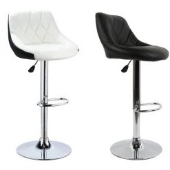 Aqrau Lot De 2 Tabouret De Bar Avec Siège Bien Rembourré, 2 Design 2 Couleurs, Tabourets En Simili-Cuir Réglable, Blanc+noir – Blanc+noir