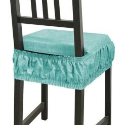 EMMEVI Coussin Pour Chaise En Coton Amovible Lavable Bande Élastique Couleur Pastel Unie – Turquoise