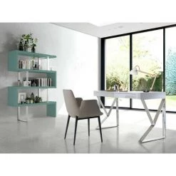 LES TENDANCES Chaise Avec Accoudoirs Tissu Et Pieds Acier Noir Kanawa – Lot De 2 – Couleur MIRAGE 95