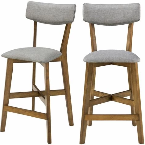 Chaise de bar mi-hauteur en tissu gris et pieds en bois foncé finition noyer (lot de 2) – Elmer –