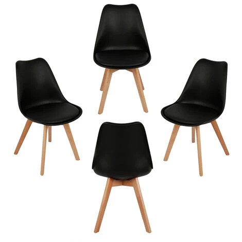 Le design scandinave dans votre intérieur est désormais possible grâce à ce lot de 4 chaises. Vous succomberez à ces courbes tendances et son côté vintage. Son piétement en bois massif et sa coque en plastique avec un coussin vous apporteront un grand confort lors de vos dîners en famille ou entre amis. Craquez pour notre modèle de chaise scandinave qui donnera du charme à votre décoration.