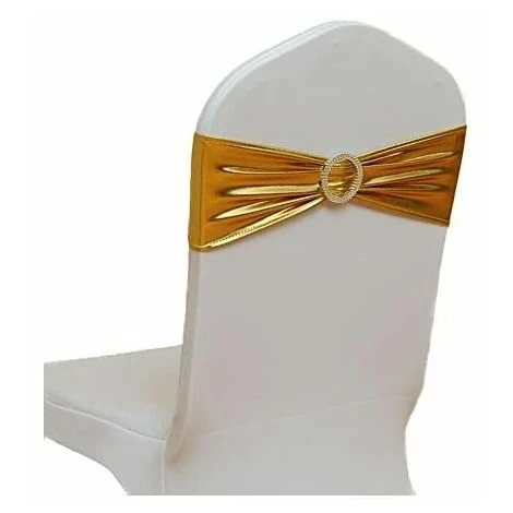 Matériel?: Spandex, c’est la ceinture de chaise en matériau doré brillant, aspect luxueux. Les sangles s’adaptent à une largeur de chaise de 35 à 50 cm (13,7 à 19,6 pouces), Quantité?: 10 pièces Veuillez noter qu’en raison des limitations de la technologie photographique et des différents paramètres du moniteur, la couleur de la photo peut être légèrement différente de l’article réel