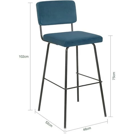 Caractéristiques :– Matériau : Siège en velours, pieds en métal. – Dimensions totales (L x P x H) : 46 x 52 x 102 cm. – Hauteur de l’assise : 75 cm. – Capacité de charge Maximum : 150 kg. – Poids de l’article environ : 5,3 kg. – Cet article est livré sans éléments décoratifs des photos. -Livraison : 2 x tabourets de bar, 1 x notice de montage. -Toutes les dimensions sont mesurées manuellement, il peut y avoir une différence de 1 à 3 cm. |